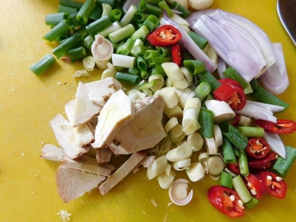 Bước 1: Tỏi, riềng, hành tím, riềng, sả, ớt thái nhỏ sau đó băm hoặc xay nhỏ.