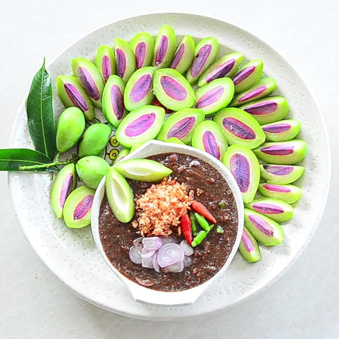 Nhìn loại quả này được bổ đôi sắp cùng một đĩa mắm chấm kèm đúng là khó kiềm lòng được.