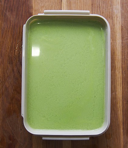 Đổ thạch ra hộp, đợi nguội rồi đặt vào ngăn mát tủ lạnh khoảng 2 giờ là có thể dùng được.