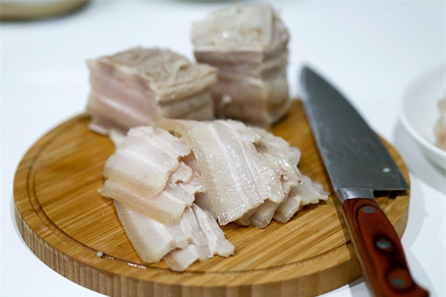 Vớt thịt ra và để nguội bớt và thái mỏng vừa ăn.