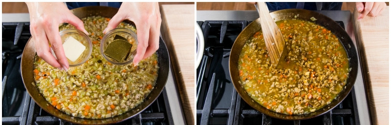 Thêm nước dùng gà hoặc nước để tạo chất lỏng bao phủ hết các nguyên liệu.