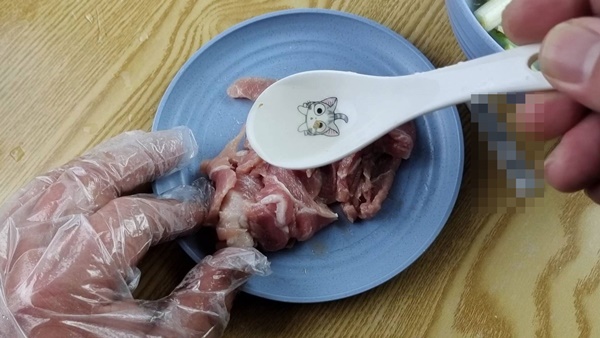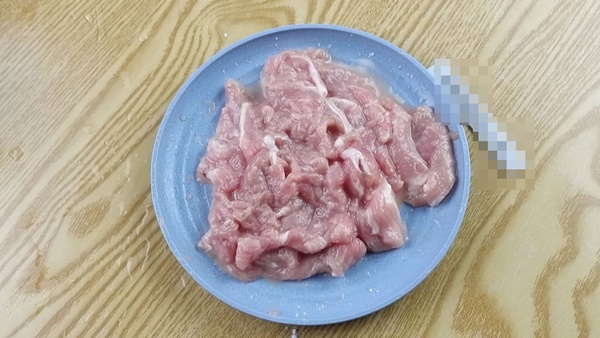 Sau đó, cho một hoặc hai thìa bột năng trộn đều vào thịt, trộn đều. Mục đích của việc thêm bột năng là để khóa ẩm trong lát thịt, từ đó tăng độ mềm ngọt hơn.