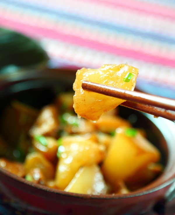 6. Khi nước cạn có nghĩa là đã thực hiện xong món ăn. Lưu ý đừng để nước sốt khô cạn quá, nên để lại một ít nước sốt trên chảo để củ cải và thịt được ngấm đậm vị.