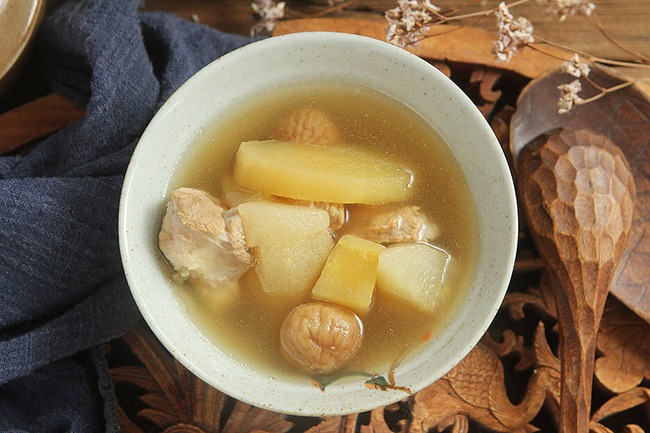 - 200g sườn non, 1 quả lê nhỏ, nửa quả táo, vài quả sung khô, gia vị cơ bản.