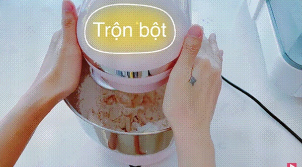 - Đổ hỗn hợp trên vào 250g bột mì, nhào bột đều tay (hoặc dùng máy nhào) rồi dùng tay nhồi bột.