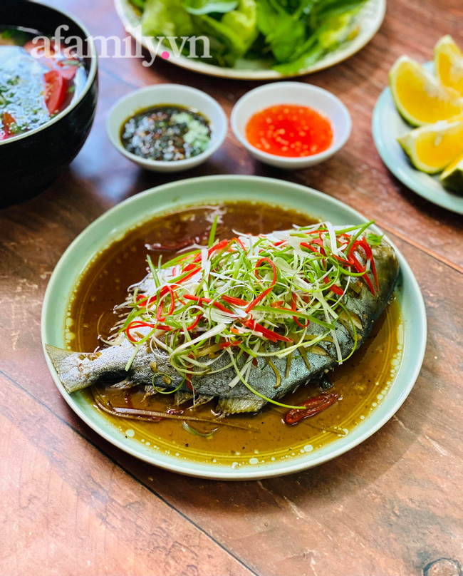Xếp gừng đã cắt sợi và đầu hành, hành lá cắt khúc lên cá. Cho vào xửng hấp 30 phút là được. Cho đĩa cá hấp ra khỏi xửng. Hành lá và ớt chuông cắt sợi thả vào nước rồi vớt ra vẩy ráo. Xếp lên trang trí đĩa cá hấp. Món có thể chấm kèm nước mắm ngò, mắm ớt tỏi ăn kèm rau sống. Hoặc cuốn bánh tráng rau sống đều ngon.