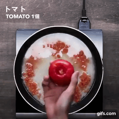 Bước 3: Đặt một quả cà chua vào chính giữa chảo rồi đậy nắp lại.