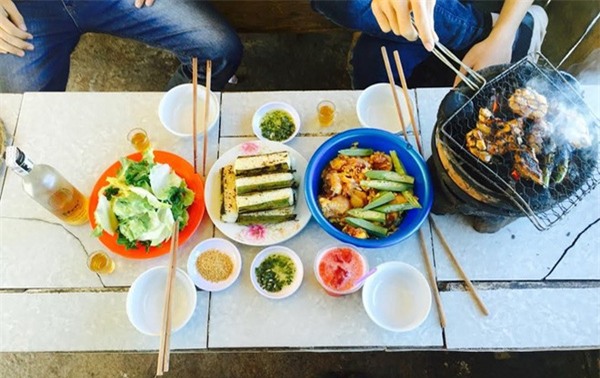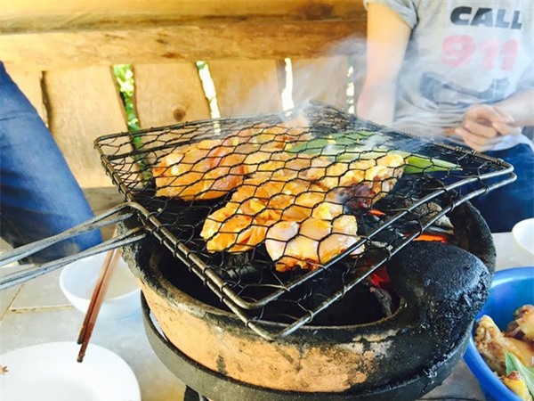 Phong cảnh tuyệt vời, gà nướng khỏi chê, còn có thêm rượu dâu.