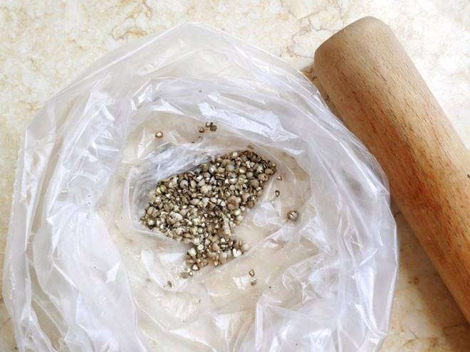 Cho hạt tiêu vào túi nilon, dùng cây lăn nghiền nát hạt tiêu qua túi, sau đó cho vào túi ướp (hoặc quấn lại bằng gạc) rồi đặt sang một bên. Canh cho nhiều hạt tiêu tuy ngon nhưng nhiều người lại không thích ăn trực tiếp hạt tiêu. Vì vậy, không nên rắc hạt tiêu trực tiếp vào nồi canh, điều này sẽ khiến canh chứa đầy hạt tiêu, dễ gây nhiệt khi uống canh và ăn thịt.