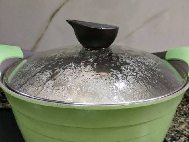 Tiếp tục đậy nắp nồi và đun canh trên lửa lớn. Tại sao không chuyển sang lửa vừa phải và đun nhỏ lửa ngay sau khi nước sôi? Bởi vì ninh canh trên lửa lớn là bí quyết thứ hai để nấu nước canh hầm sẽ có màu trắng sữa.