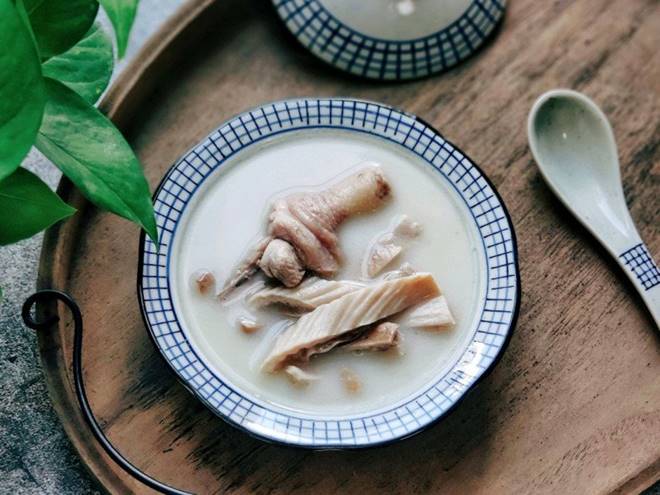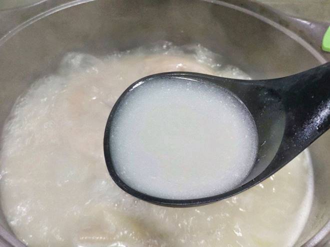 Trong khoảng 15 phút, bạn có thể thấy nước canh trong suốt ban đầu đã chuyển sang màu trắng sữa. Lúc này, bạn có thể chuyển sang lửa vừa và nhỏ, tiếp tục đun trong 1,5 giờ hoặc 2 giờ.