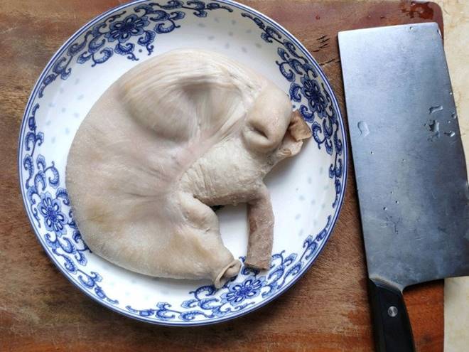 Sau 2 giờ, bạn có thể dùng đũa cắm vào dạ dày, nếu thấy cắm dễ chứng tỏ đã đạt. Gắp dạ dày lợn ra, để nguội một chút rồi cắt thành miếng vừa ăn.