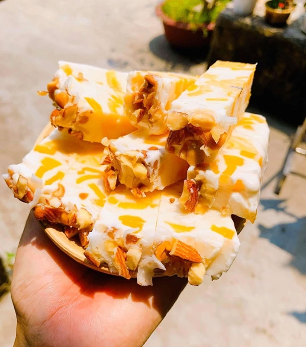 - Sau khi kem đã đông lại bạn cắt kem thành từng miếng vừa ăn cho vào dĩa và thưởng thức ngay thôi.