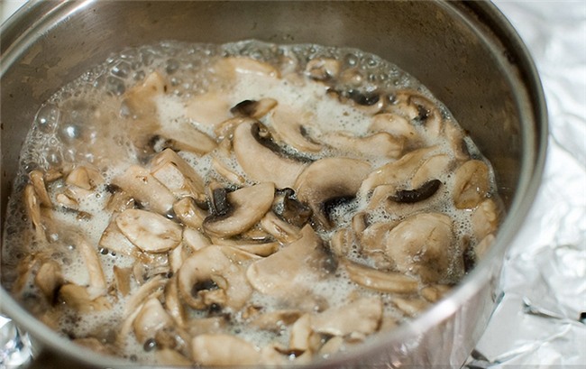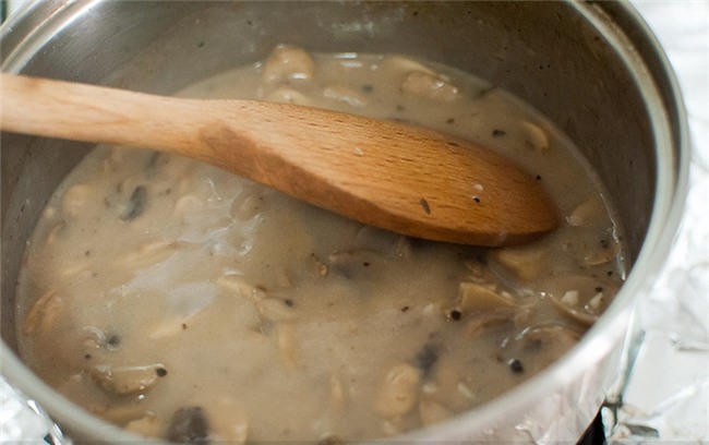 Sau đó tiếp tục nấu đến khi nấm mềm rụt thì nêm gia vị muối tiêu cho vừa ăn. Giờ thì có thể rưới lên bò bít tết hoặc mì đã luộc chín.