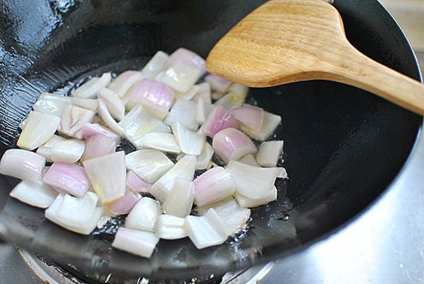 Đổ dầu ăn vào một chiếc chảo khác, đun nóng. Cho hành tây vào xào thơm.