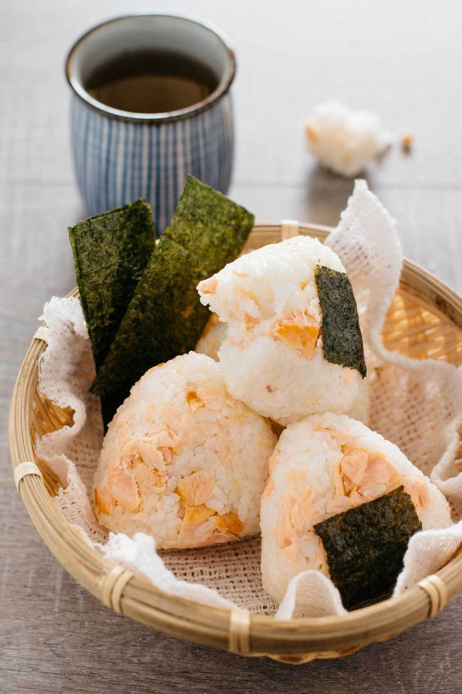 - Dùng tay nén chặt cơm cho dính vào nhau, xoay đều tay, ép cơm vào giữa ngón trỏ và ngón cái để tạo góc tam giác, sau đó xoay vài vòng để tạo góc nhọn của tam giác cho 2 góc còn lại. Chỉnh sửa lại cho hình tam giác được đều.