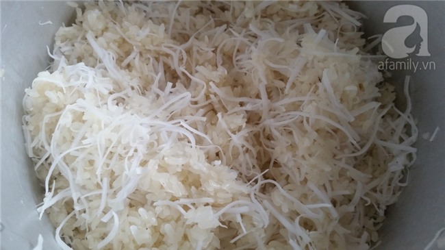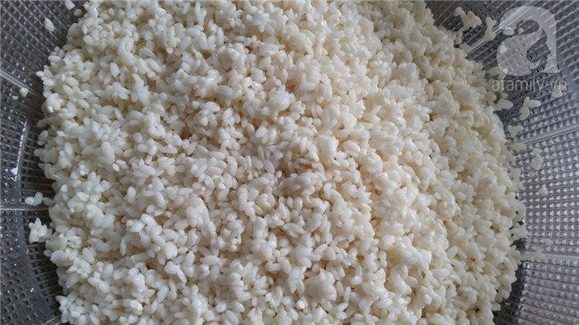 Gạo nếp ngâm qua đêm cho nở, sau đó vo lại rồi để ráo nước.