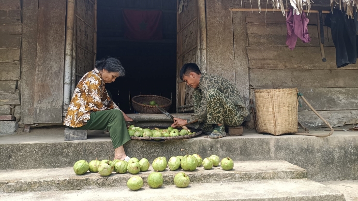 Về nhà, anh sẽ cùng ông bà thái lát ra và phơi khô, đóng túi đem bán.