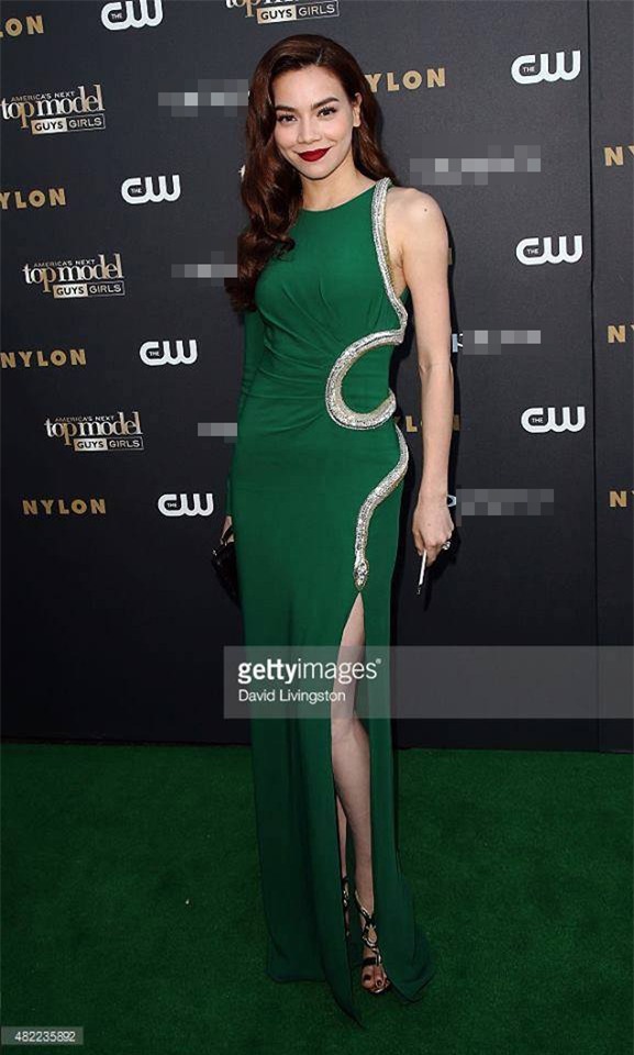 Diện độc bộ váy xanh kết hợp chi tiết ánh kim có giá khoảng 70 triệu, Hồ Ngọc Hà tỏa sáng trên thảm đỏ ra mắt thí sinh của America’s Next Top Model mùa giải 22. Truyền thông quốc tế dành nhiều lời khen cho nữ ca sĩ đến từ Việt Nam.