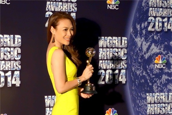 Những năm về trước, gu thời trang của Mỹ Tâm luôn bị phàn nàn. Tuy nhiên, trên sân khấu World Music Award 2014, nữ ca sĩ gây bất ngờ khi diện bộ váy màu vàng chanh ngọt ngào kết hợp những đường cắt xẻ táo bạo.