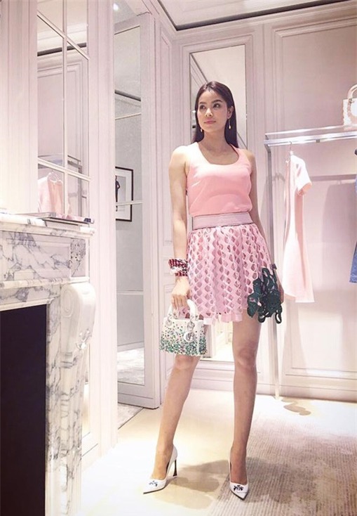 Phạm Hương trông sến sẩm, “quê kiểng” hơn bình thường dù diện cả cây hàng hiệu.