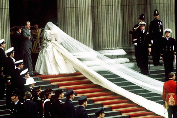 Chuyên gia trang điểm cho Công nương Diana trong ngày cưới mới bật mí rằng bà đã vô tình làm đổ nước hoa lên chiếc váy ngay trong lúc chuẩn bị. Êkip đã phải bàn bạc và hiến kế cho bà vừa đi vừa kéo phần trước của chiếc váy một cách tự nhiên để che đi dấu vết này.