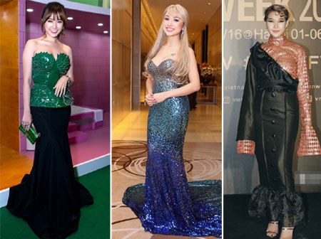 Những chiếc váy bó sát cơ thể, dài chấm gót không ít lần khiến các sao nữ đỏ mặt.