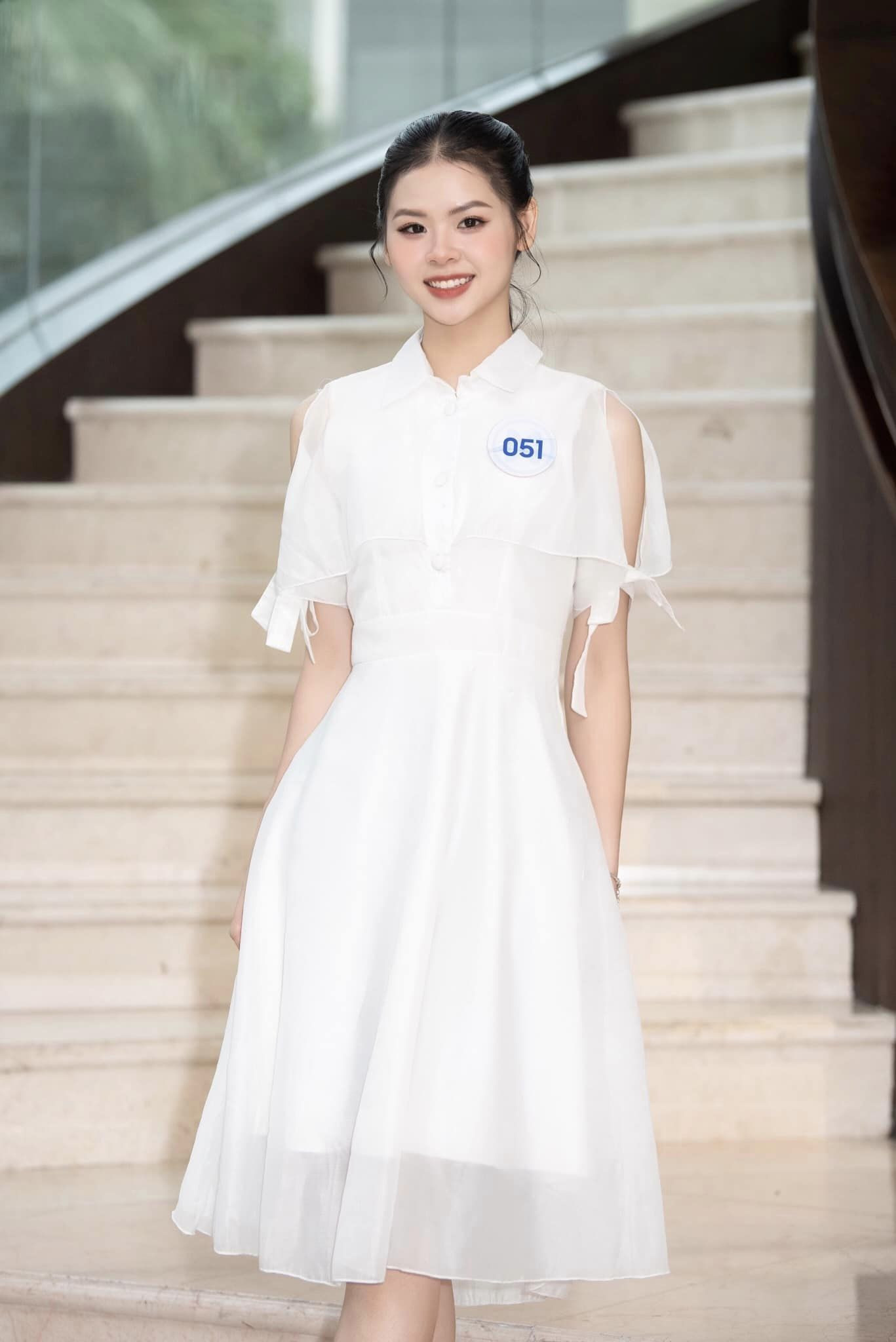 Nguyễn Ngân Hà (SBD 051) là thí sinh đầu tiên lọt top 20 chung cuộc Miss World Vietnam 2023 nhờ chiến thắng danh hiệu Người đẹp Tài năng. Cô sinh năm 2003, quê Nghệ An, cao 1,7m, có số đo 3 vòng: 81-59-95cm, hiện là sinh viên ĐH Kinh tế (ĐH Đà Nẵng). Ngân Hà sở hữu gương mặt phúc hậu đậm chất Á Đông cùng nụ cười rạng rỡ.