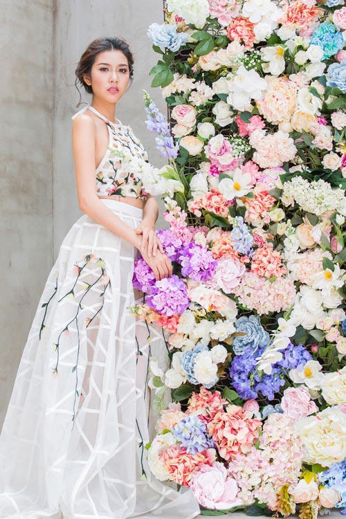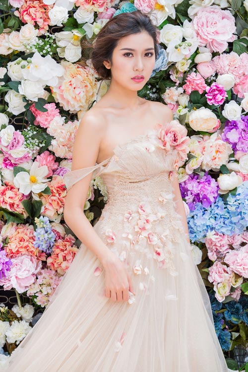 Các trang phục lấy cảm hứng từ những đóa hoa vừa chớm nở và Thúy Vân như nàng thơ lạc vào vườn hoa đầy màu sắc tươi đẹp ấy.