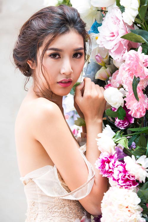 Thúy Vân khiến người hâm mộ ngây ngất với vẻ đẹp dịu dàng, kín đáo nhưng vô cùng gợi cảm bên "rừng hoa" rực rỡ sắc hương.