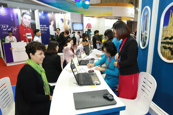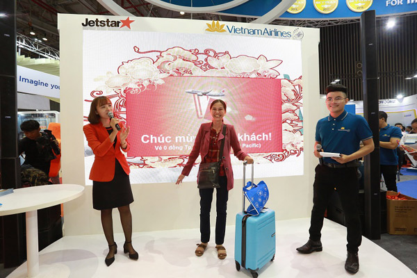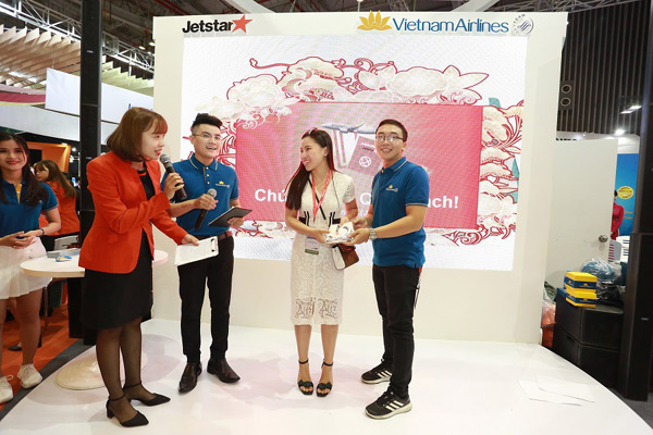 Tại gian hàng chung của Vietnam Airlines, Vietnam Airlines dành tặng khách hàng các mức giá vé chỉ từ 299.000 đồng/chiều cho hành trình nội địa và từ 210.000 đồng/khứ hồi cho hành trình quốc tế.