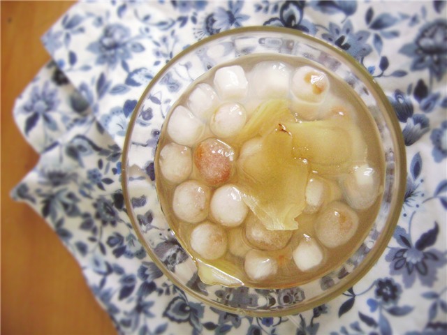 hấp chín, bọc trong quả nhãn lồng trắng trong rồi nấu cùng đường phèn