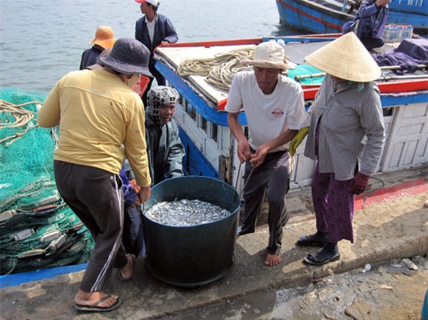 Trong một lần rong ruổi vùng biển Mỹ Á, tôi được người bạn mời về nhà chiêu đãi món cá cơm luộc xúc bánh tráng. Tàu cập bến, anh cùng bạn chài vội vã chuyển những thùng cá cơm tươi rói vào bờ bán cho thương lái đưa đến tiêu thụ ở nhiều vùng miền. Rời tàu, anh mang theo vài ký cá tươi ngon cùng những người bạn lội bộ trên con đường bêtông về nhà.