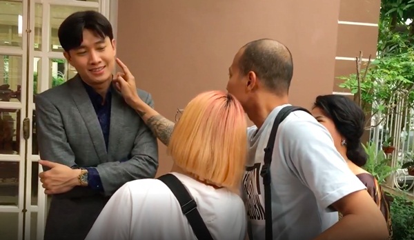Hóa ra, đây là cảnh hóa trang Vũ có vết son môi trên mặt. Để phần hóa trang chân thật nhất, nhân viên hóa trang đã đặt môi của mình lên má vũ. Chứng kiến cảnh này, "mẹ" Ngân Quỳnh và các anh em trong ekip đều phá ra cười ngất. Không phải Thư hay ai khác, đây chính là cô gái công khai hôn Vũ nhưng Thư lại chẳng thể đánh ghen.