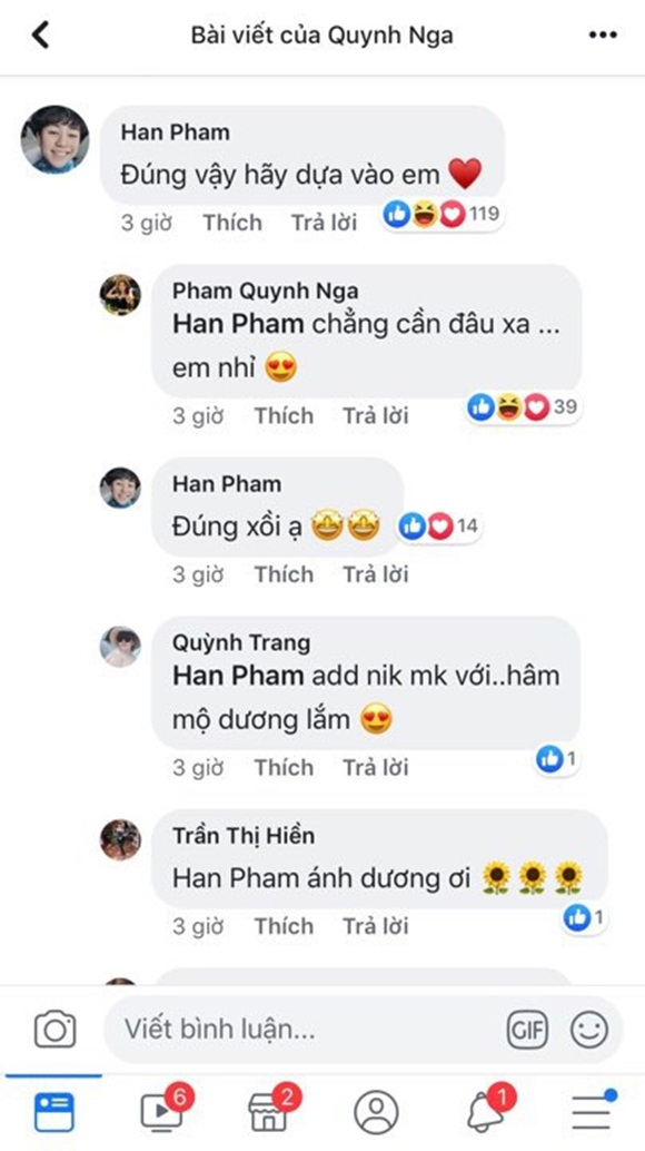 Sau hàng loạt diễn biến gay cấn, phim truyền hình Về nhà đi con do VFC sản xuất đang trở thành đề tài hấp dẫn, thu hút nhiều sự quan tâm từ khán giả. Đặc biệt hơn, kể từ khi cô nàng Nhã (Quỳnh Nga) xuất hiện, fan Về nhà đi con đã có đối tượng để trách mắng, chê bai. Bất chấp việc Vũ (Quốc Trường) đã có vợ, Nhã vẫn lao vào giành giật. Mới đây, Quỳnh Nga bất ngờ đăng tải hình ảnh cô và diễn viên Bảo Hân - thủ vai Dương trên facebook kèm dòng caption: "Nếu không có chàng trai để dựa vào... thì ta sẽ dựa vào... Hân Phạm".