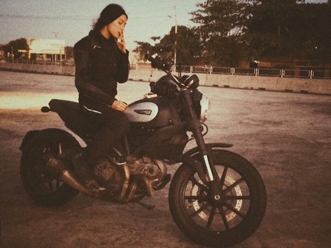 Đằng sau vẻ mềm yếu nữ tính, Nhung Kate lại rất thú với những chuyến đi phượt bằng motor phân khối lớn.