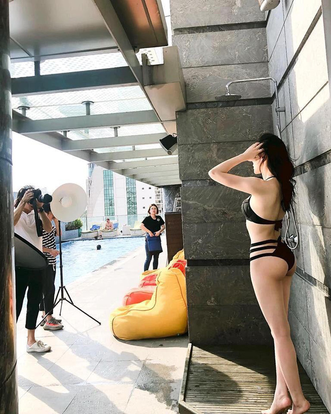 Những hình ảnh hậu trường cho thấy sở hữu các số đo của Phương Oanh hoàn toàn tự nhiên, không hề được can thiệp, đặc biệt là vòng 3 "quả táo" săn chắc.
