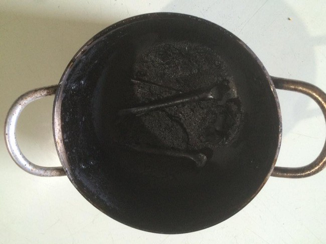 Và đây là siêu phẩm "gà hầm hỏa thiêu" chỉ còn tro cốt của một anh chàng nấu cho người yêu.