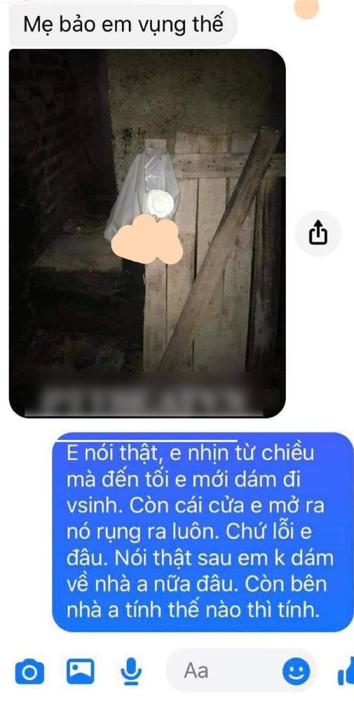 Cô gái chỉ còn biết thanh minh: 'Em nhịn từ chiều mà đến tối em mới dám đi vệ sinh. Còn cái cửa em mở ra nó rụng ra luôn chứ lỗi em đâu. Nói thật sau em không dám về nhà anh nữa đâu. Còn bên nhà anh tính thế nào thì tính'.