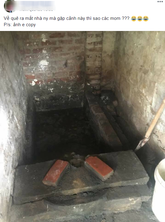 Bức ảnh bệ xí "model" từ thời bao cấp với 2 viên gạch dùng để chân, mọi chất thải không có chỗ che, không có đường ống xả thải nhìn khá mất vệ sinh. Thậm chí có người còn đùa rằng, nếu trời mua trơn trượt, không may té ngã đúng vào hố thì đúng là ''đại thảm họa''. Nhìn qua bức ảnh, nhiều chị em tỏ ra bình thường, thế nhưng bên cạnh đó cũng rất nhiều ý kiến bày tỏ sự ''thất kinh'' thậm chí sợ hãi, xin rút lui ngay nếu chẳng may nhà vệ sinh quê người yêu giống thế này.