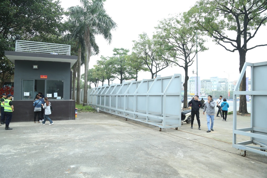 Quầy bán vé bên ngoài sân Mỹ Đình khá vắng người mua (Ảnh: Tuấn Bảo).