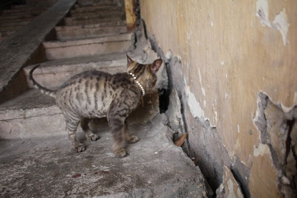Ngoài ra, tại một số mảng tường của dãy nhà học, PV ghi nhận nhiều vết nứt. Nghiêm trọng hơn, phần móng ở phía trước dãy nhà có dấu hiệu sụt lún rõ rệt, tạo thành một khoảng hở lớn. Các bậc tam cấp dẫn lên lớp học cũng không tránh khỏi tình trạng nứt vỡ.