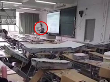 Tường phòng học đổ sập, giảng viên vẫn tiếp tục bài dạy như bình thường.
