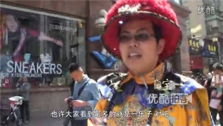 “Vị Hoàng đế” là một thanh niên ngoài 20 tuổi, ăn mặc giống vua Khang Hy trong các bộ phim cổ trang. Không chỉ vậy, thay vì dắt thú cưng thì chàng lại kéo lê một chiếc dép xỏ ngón được buộc vào một sợi dây sặc sỡ sắc màu trên khắp đường phố.