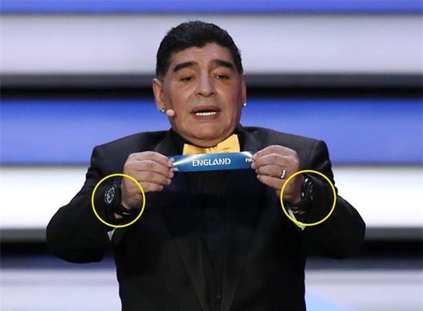 Sẽ không vấn đề gì nếu người hâm mộ không nhận ra rằng Diego Maradona một lần nữa đeo 2 chiếc đồng hồ đắt tiền giống hệt nhau ở mỗi bên tay. |
