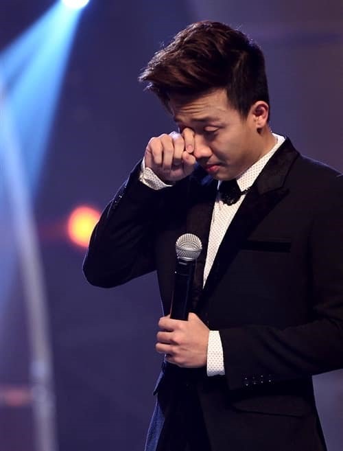 Trấn Thành khóc nói về “Đời nghệ sĩ khó nuốt“. Ảnh: Facebook Đàm Vĩnh Hưng