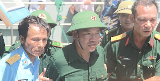 | Phi công Nguyễn Hữu Cường sau khi được ngư dân cứu trở về đất liền. Ảnh: VOV |