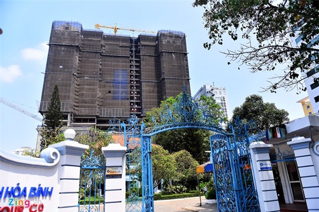 Dự án đang hoàn thiện phần thô và cất nóc cuối tháng 2. Ảnh chụp ngày 6/4. Ảnh: Lê Quân |
