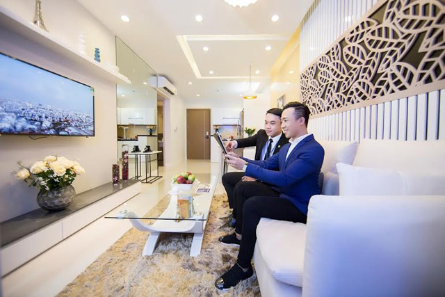 Trấn Thành chăm chú nghe nhân viên kinh doanh tư vấn về căn hộ mà anh đang quan tâm