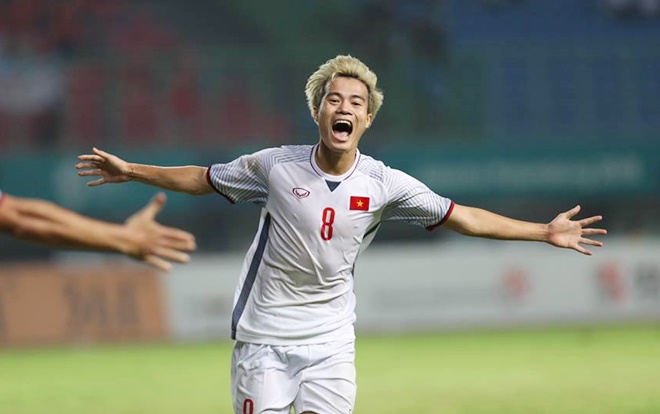 Cầu thủ Văn Toàn trong mái tóc bạch kim sau khi ghi bàn thắng tại trận tứ kết.
